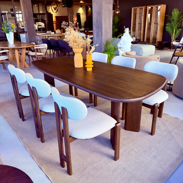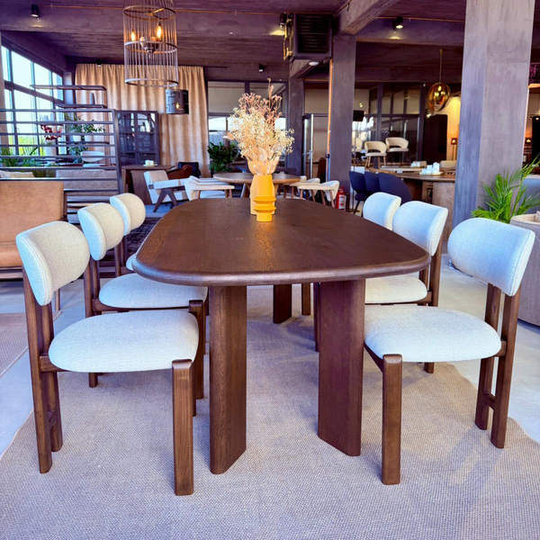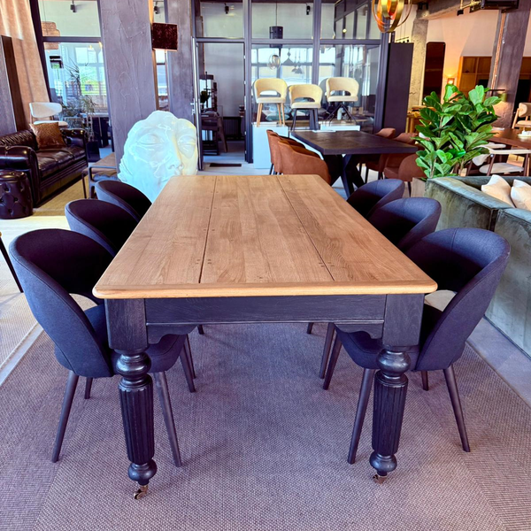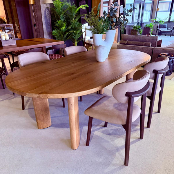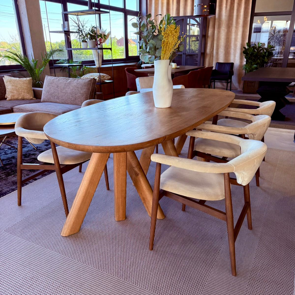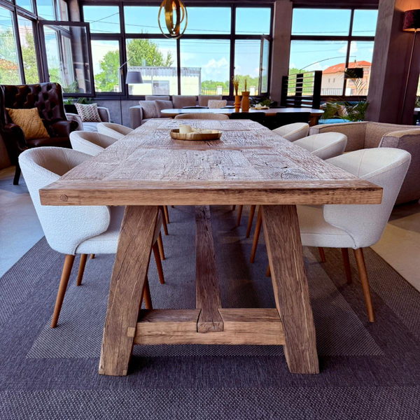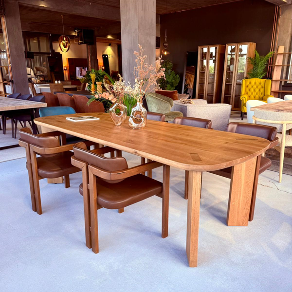 masa din lemn masiv si scaune din piele naturala
